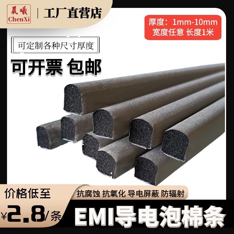Conductive foam D-type conductive cotton conductive strip tape electromagnetic shielding strip main shell compression fill strip shockproof strip conductive sponge strip EMI can be customized processing