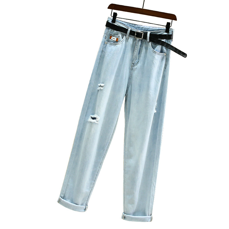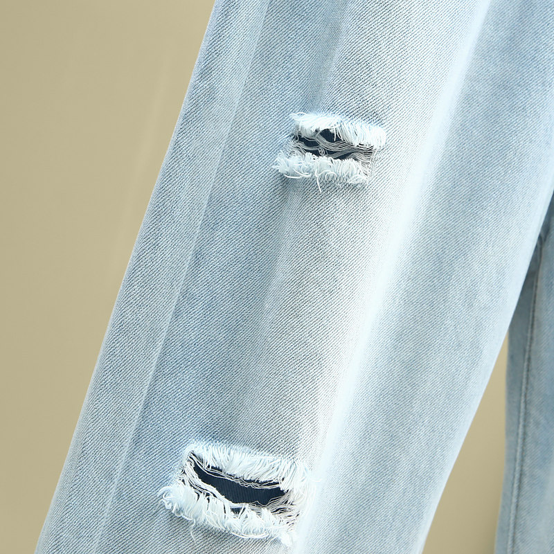 La Chapelle's ripped jeans women's summer thin section high waist loose and thin straight nine-point harem daddy pants