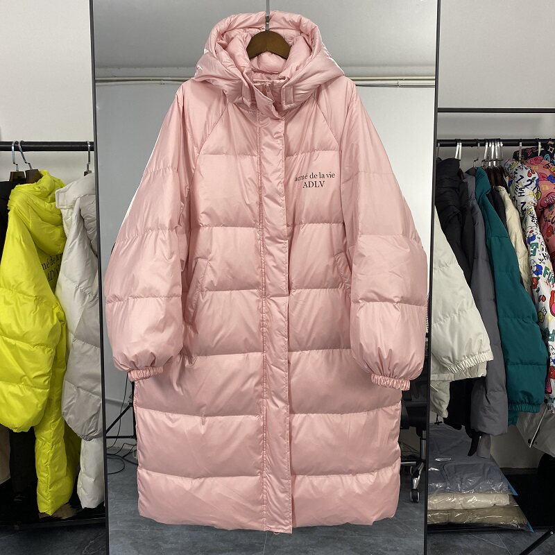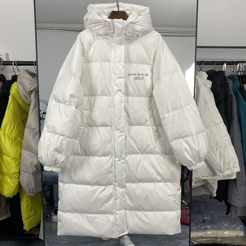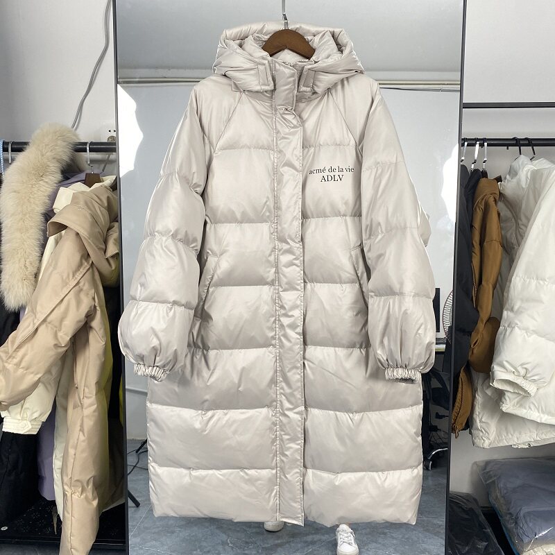 Off-season down jacket women's long version 2021 New Korean Net red loose padded knee white duck down jacket