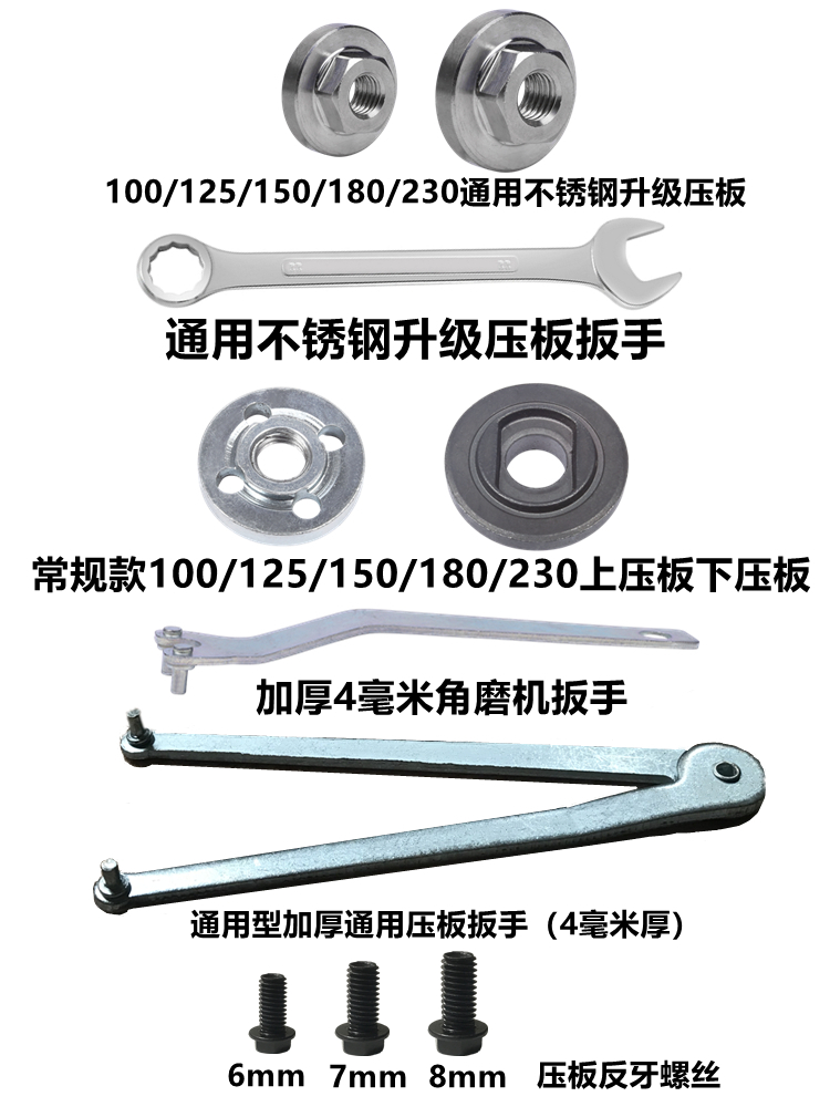 Thickened accessories set Zang thickening angle grinder wrench 9523 Tun iron pressure plate 1 pay Thick bed bag-one 100 angle grinder stainless steel pressure plate 100 angle grinder pressure plate wrench 125