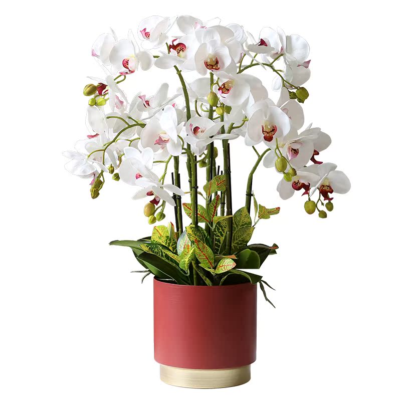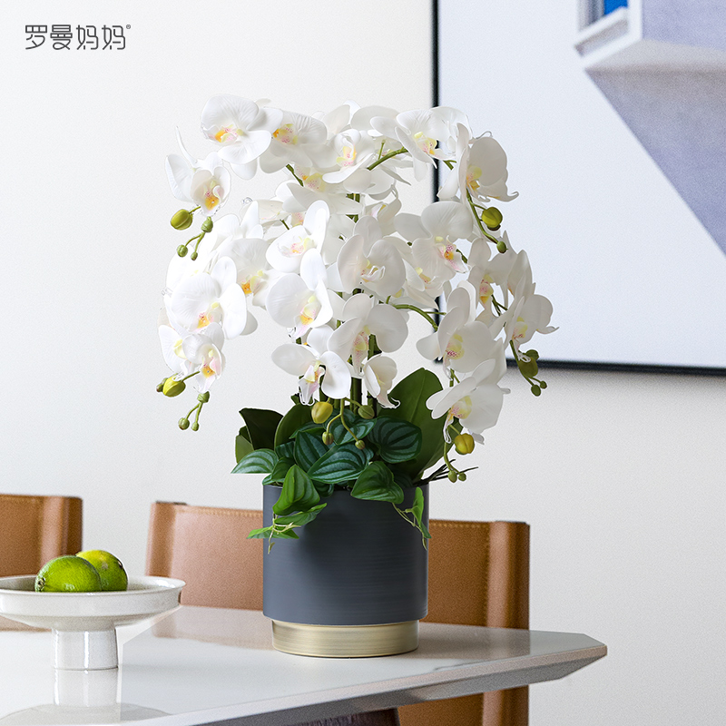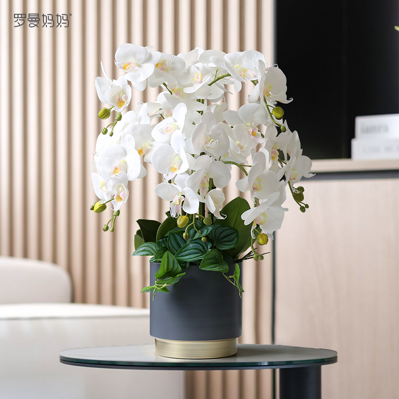 Roman mother creative feel white phalaenopsis simulation flower fake flower potted plant set desktop coffee table decoration bonsai