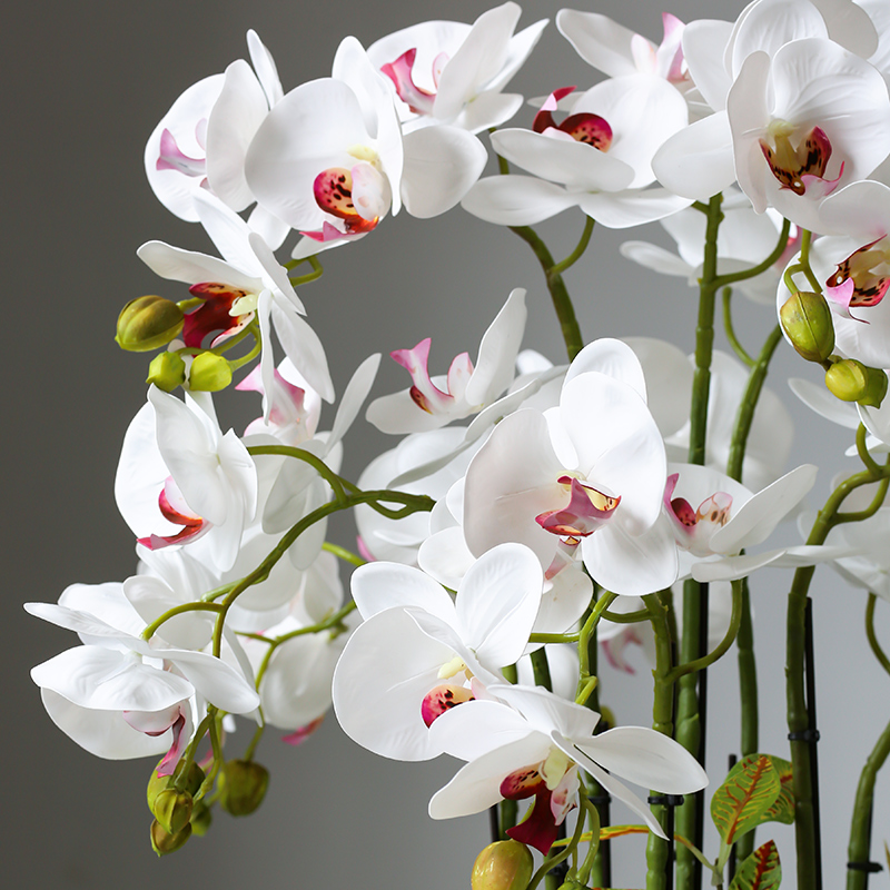 White Flower Red Heart Phalaenopsis 9 Stems Set (Light Luxury Iron Art) White Flower Yellow Heart Phalaenopsis 9 Stems Set (Light Luxury Iron Art)
