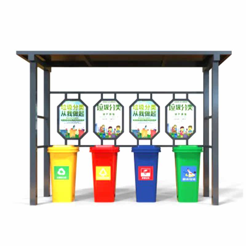 Set To Be Community Outdoor Antique Garbage Collection Sorting Kiosk Recycling House Stainless Steel Promotional Bar Baking Paint Sorting Box Barrel