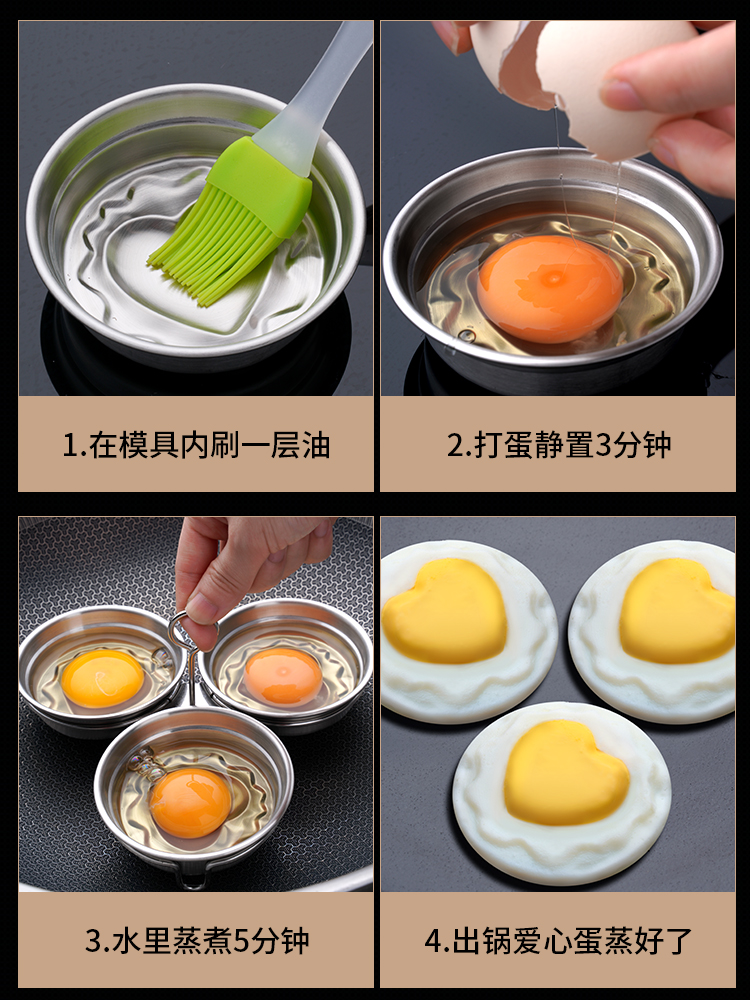 304 stainless steel steamed egg mold home breakfast heart-shaped egg boiled poached egg artifact creative steamed egg abrasive tool