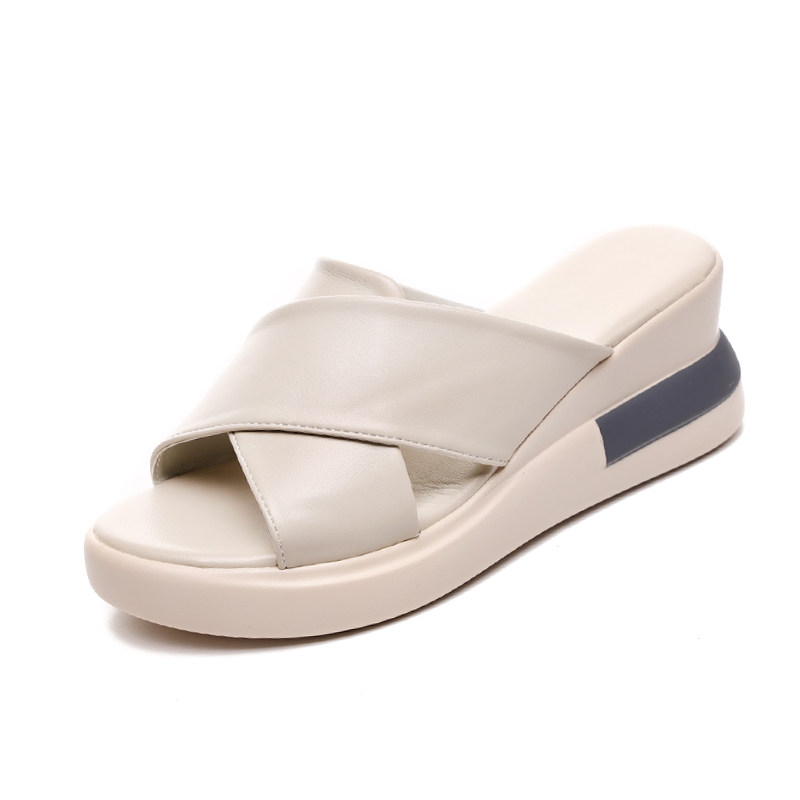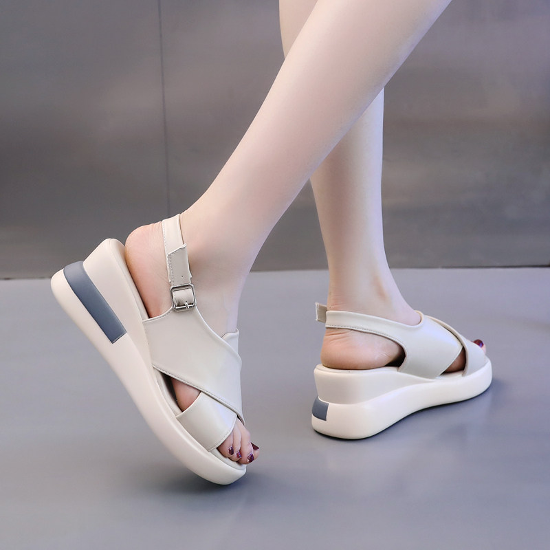 Leather wedge-shaped sandals women's soft leather Western style 2021 summer new high-heeled open-toe all-match thick-soled platform shoes