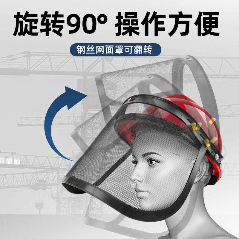 Mower safety helmet oil saw green fence cut irrigation machine face protection steel wire mesh anti-chip splash mower mask