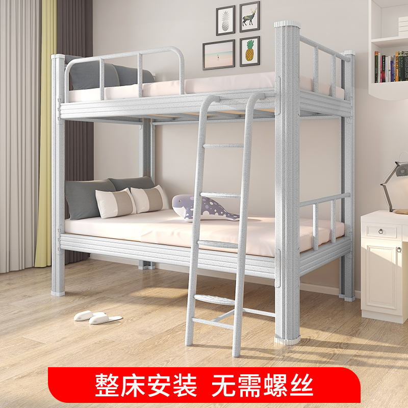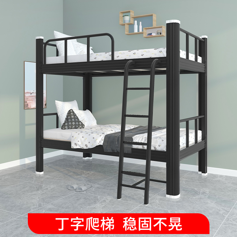 Bunk iron frame bed student dormitory bed adult upper and lower bunk staff iron bed frame high and low bed iron bed sheet person climbing ladder