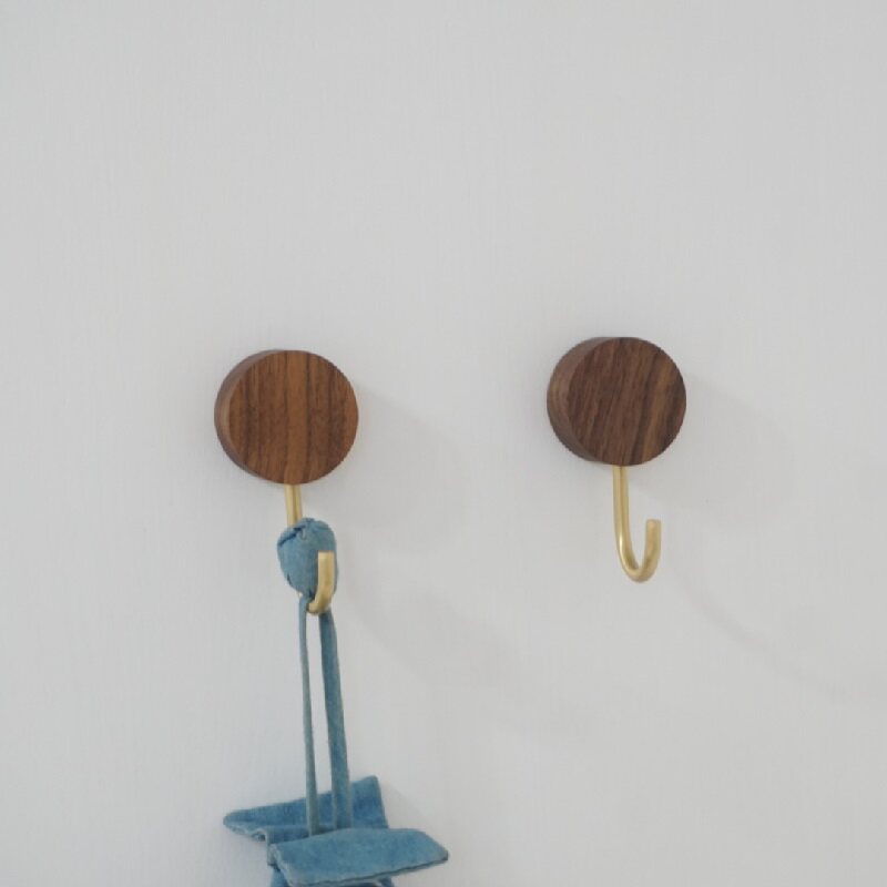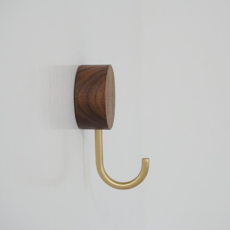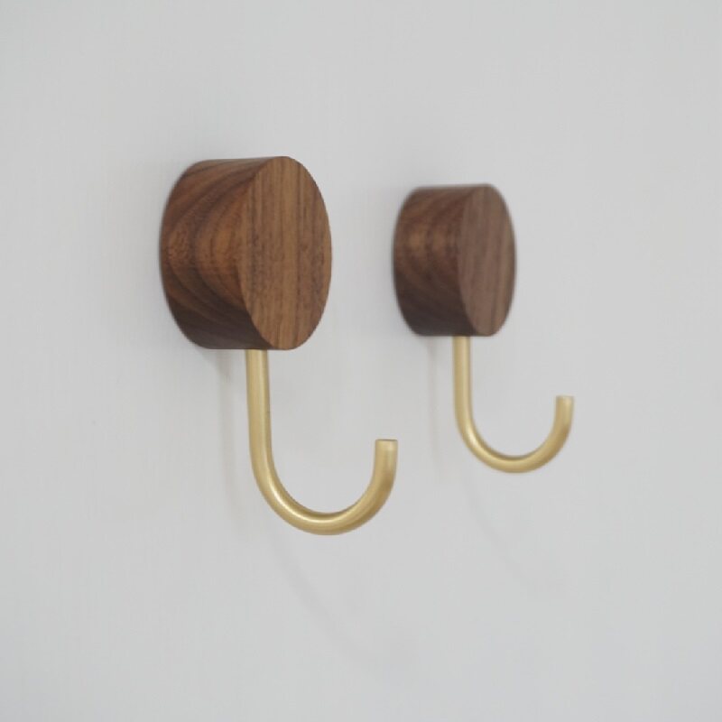 Brass Stick Hook Black Walnuts Solid Wood Free of punch hooks Genguan Kitchen Decoration Metal Single Hook Viscose Cloak Hook-Taobao