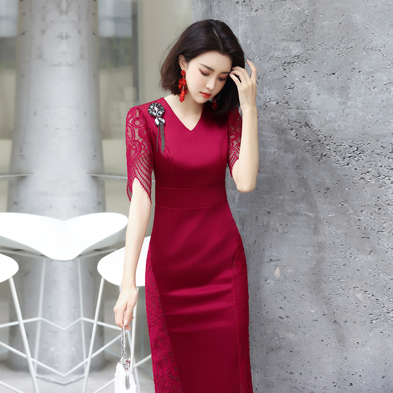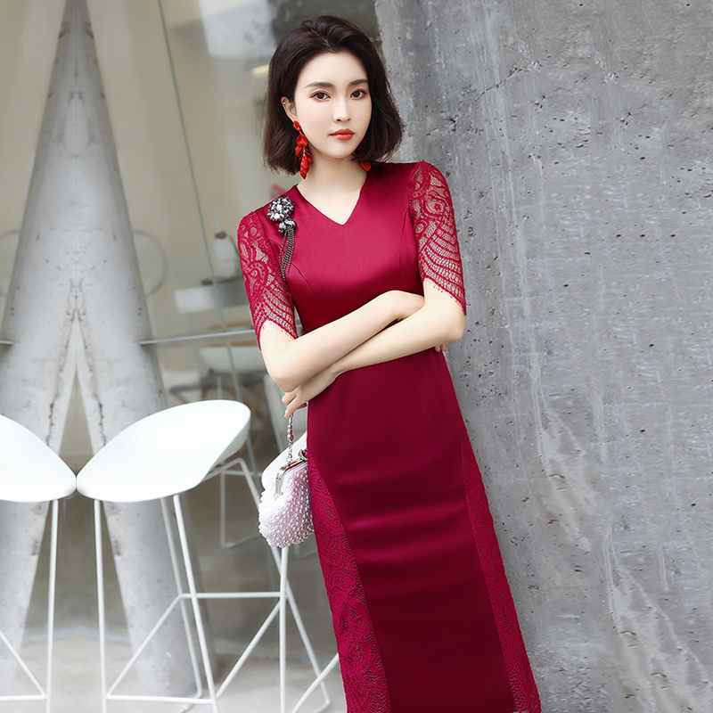 High-end wedding mommy dress young husband wedding wedding banquet noble dress