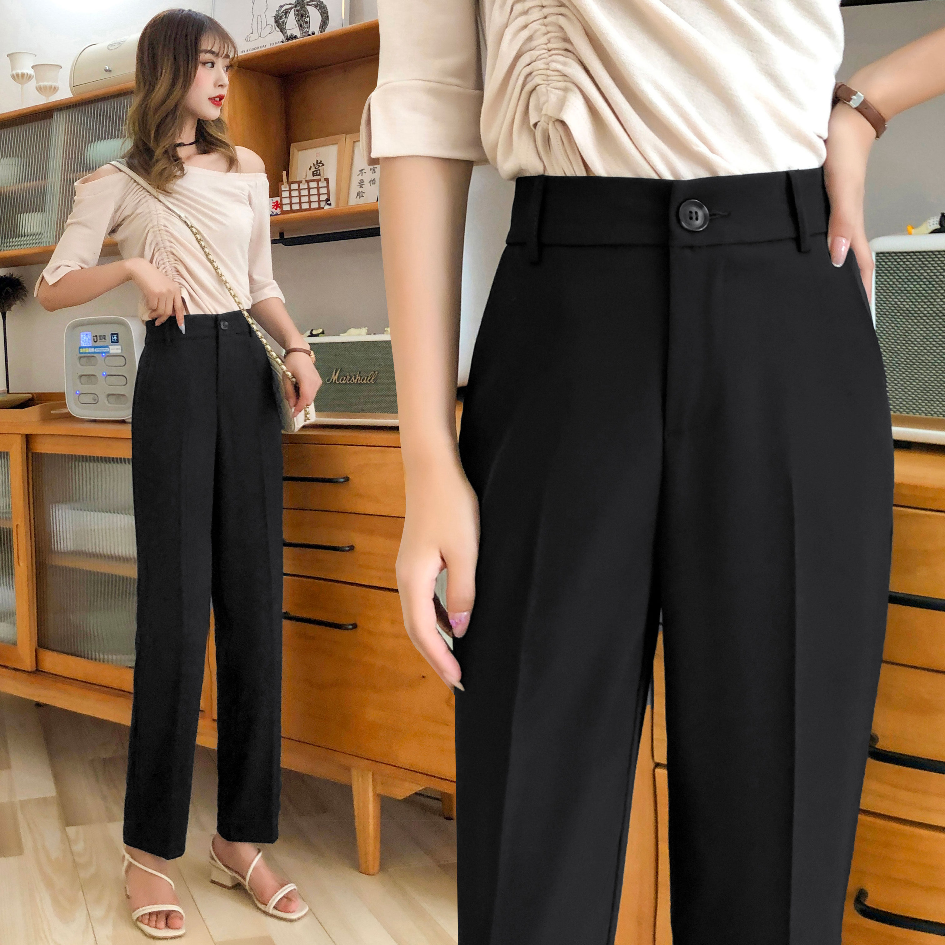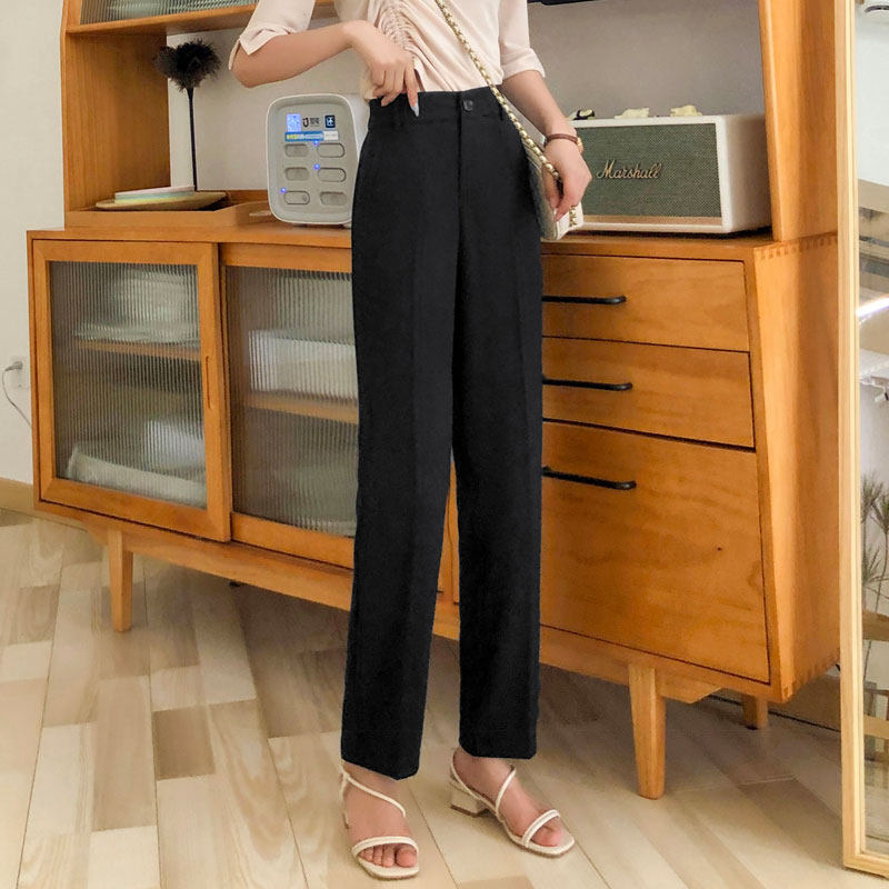 Ice Silk Snowspun Western Pants Woman Summer Thin 90% High waist loose Large size Size Black Professional Women Pants Hip large straight pair of pants
