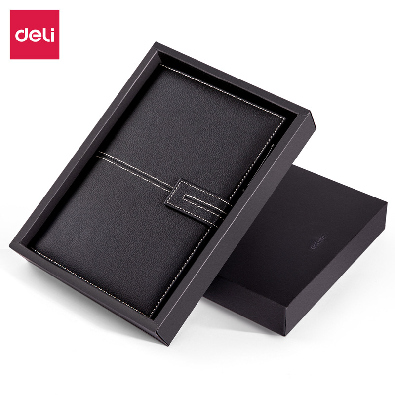 Deli 22232 leather surface book set lychee pattern PU leather surface 80G beige inner page office book with S82 gel pen