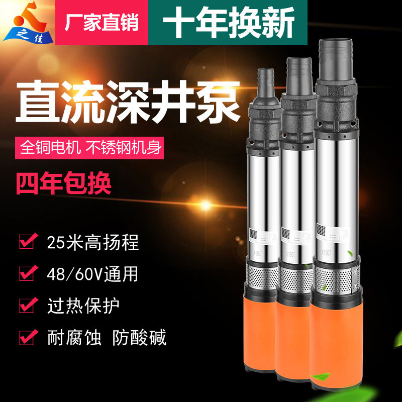 Multistage stainless steel deep well pump DC submersible pump household well water 24v48v60v72v high lift pump