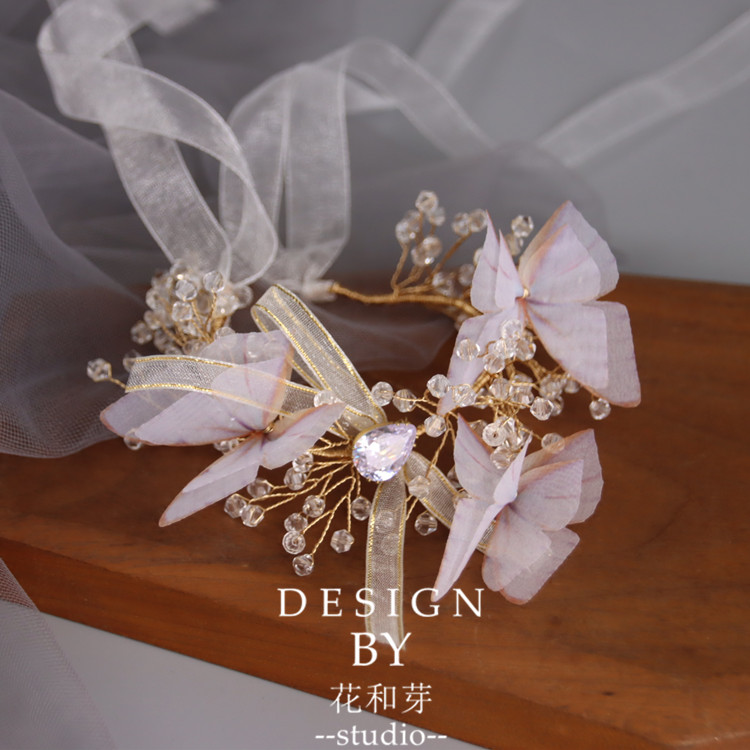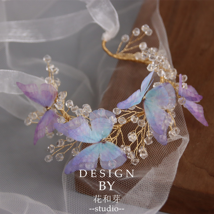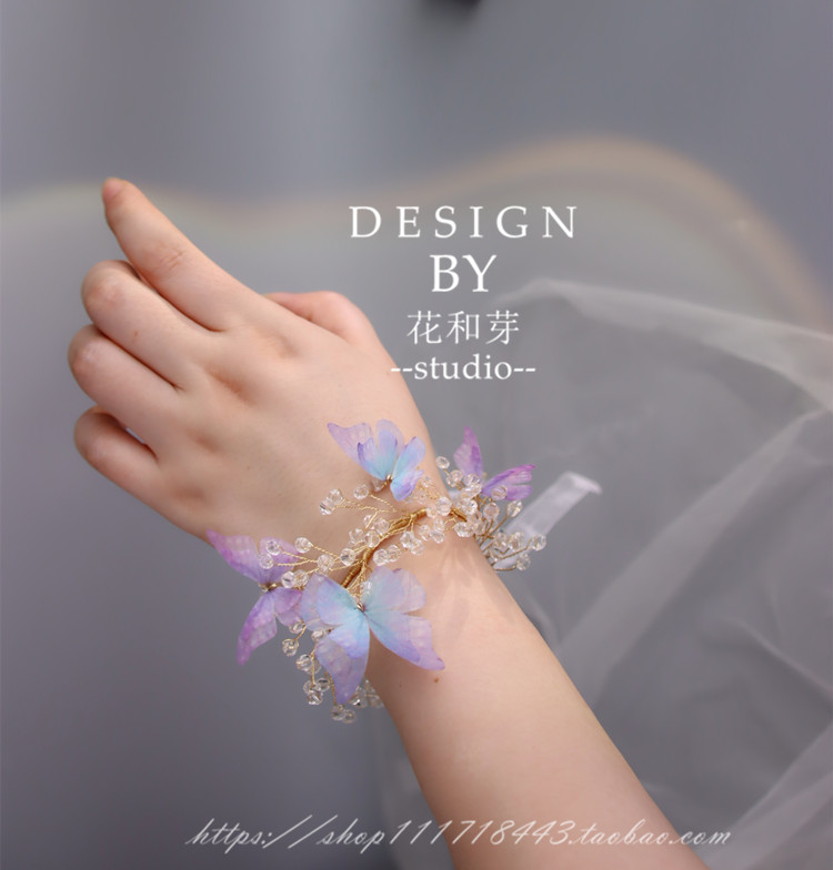 Flowers and Bud Original beauty industry blue purple yarn butterfly branch branch bride stage wristflower