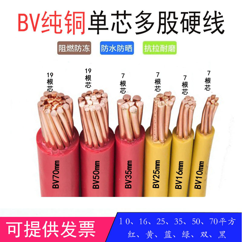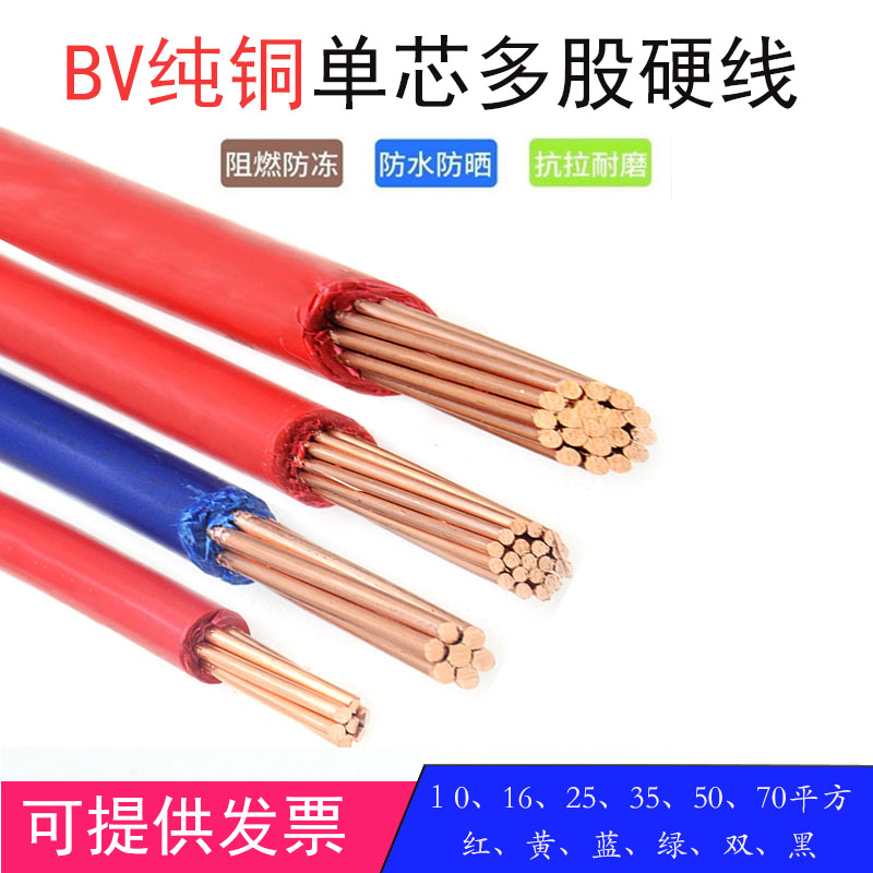 Wire and cable BV10 16 25 35 50 70 square single core multi-strand hard wire national standard pure copper wire