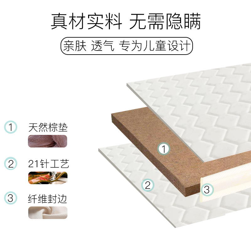 Children's mattress 3E natural environmental protection coconut palm mat 0 glue children's bed high and low bed universal brown mat