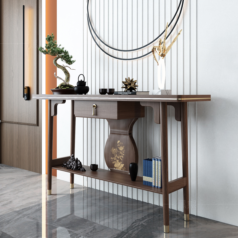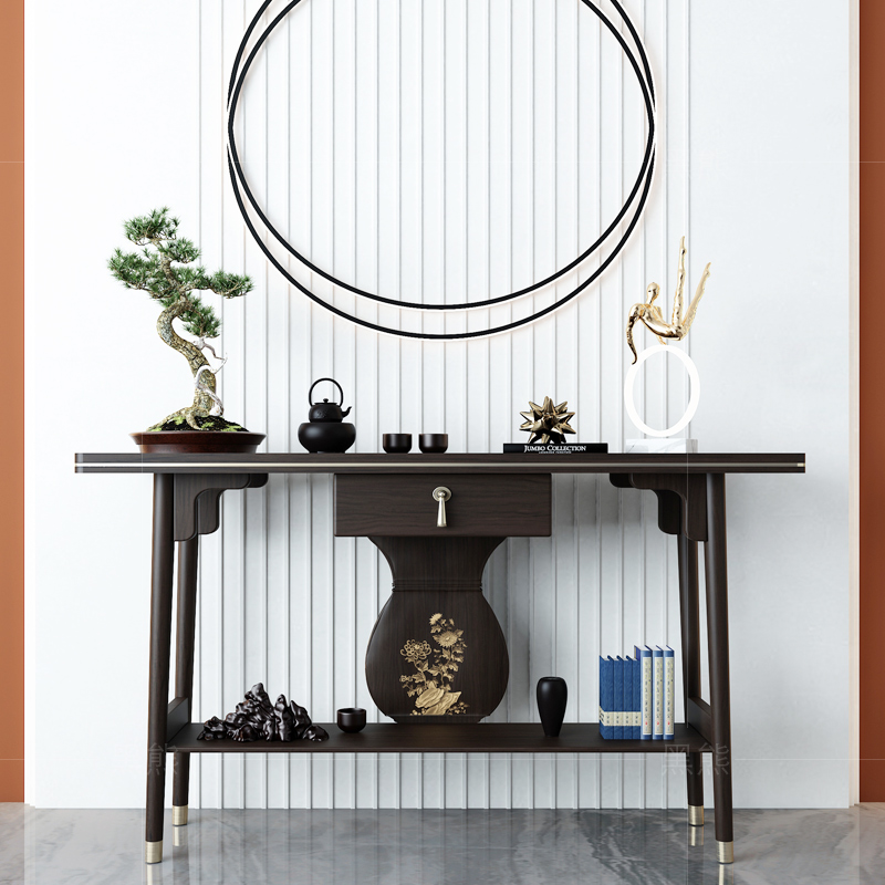 Modern minimalist new Chinese style porch table living room strip case for table entry entrance hall partition solid wood end view table wall decoration