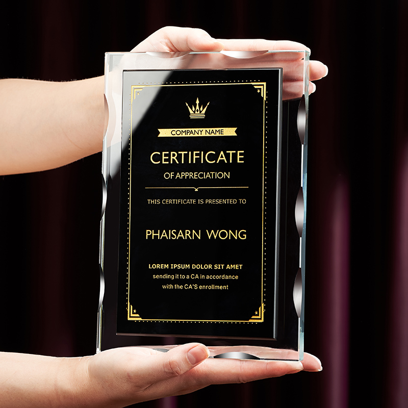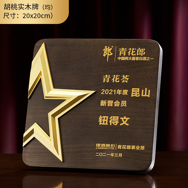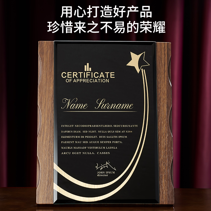 Black walnut solid wood medal trophy custom crystal license plate custom reputation plaque Dealer to join the card