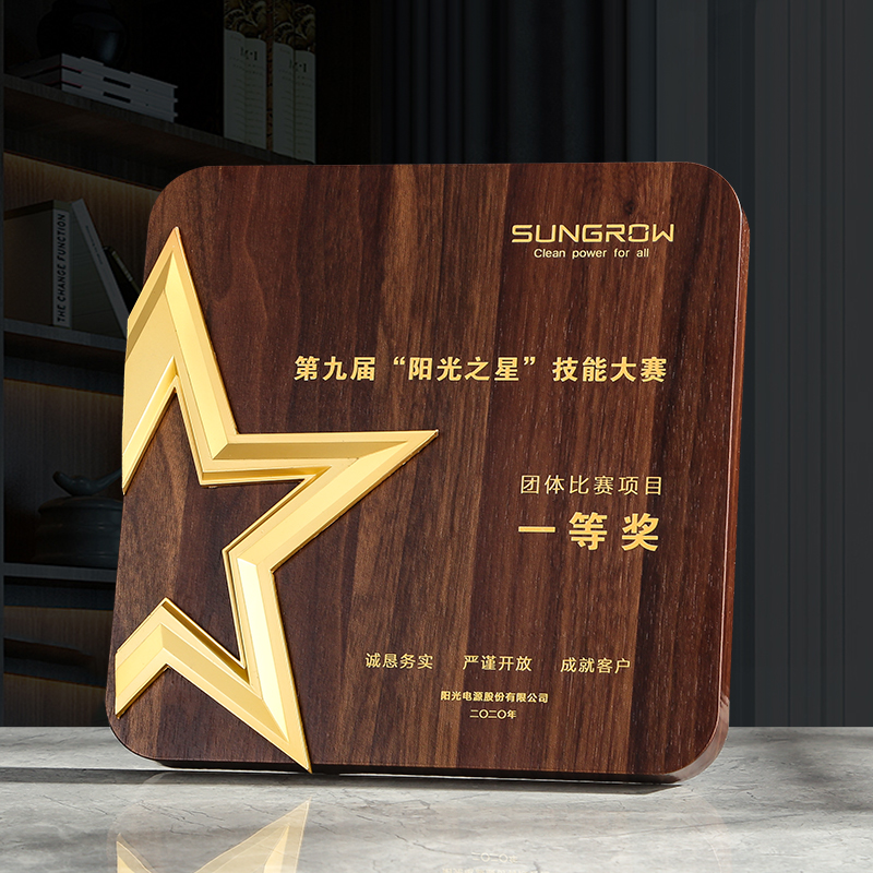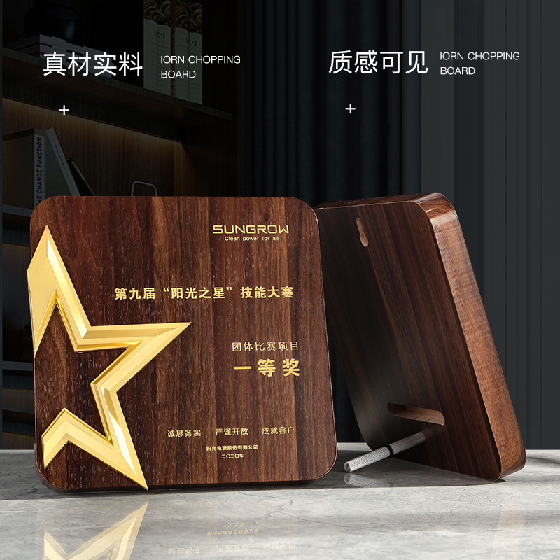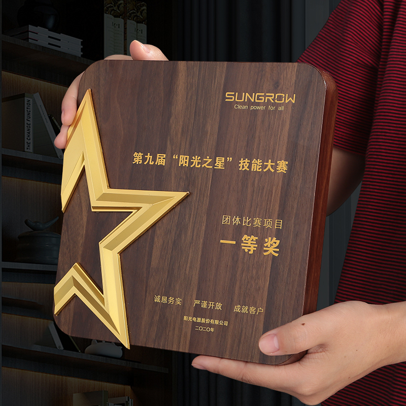 Creative metal five-pointed star walnut imitation wood medal customized custom authorization card Wooden honor plaque Certificate letter of appointment
