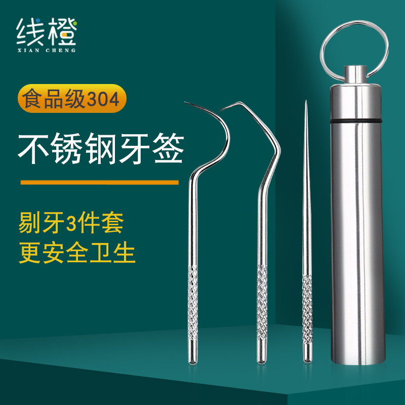 Tooth-picking deaper 304 stainless steel toothpick carry with the household grips ultra-fine picking up the tooth metal hollowing tool