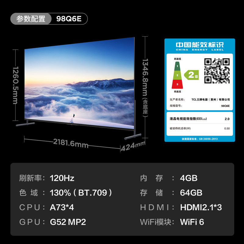 TCL 98Q6E 98 inches High colour gamut Full Screen IMAX Giant Curtain 4K HD Smart Voice Internet TV