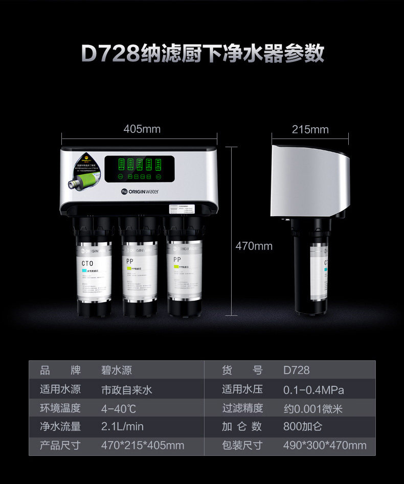 Bishuiyuan water purifier household direct drinking tap water nanofiltration membrane water purifier kitchen water filter d728 no barrel under the kitchen
