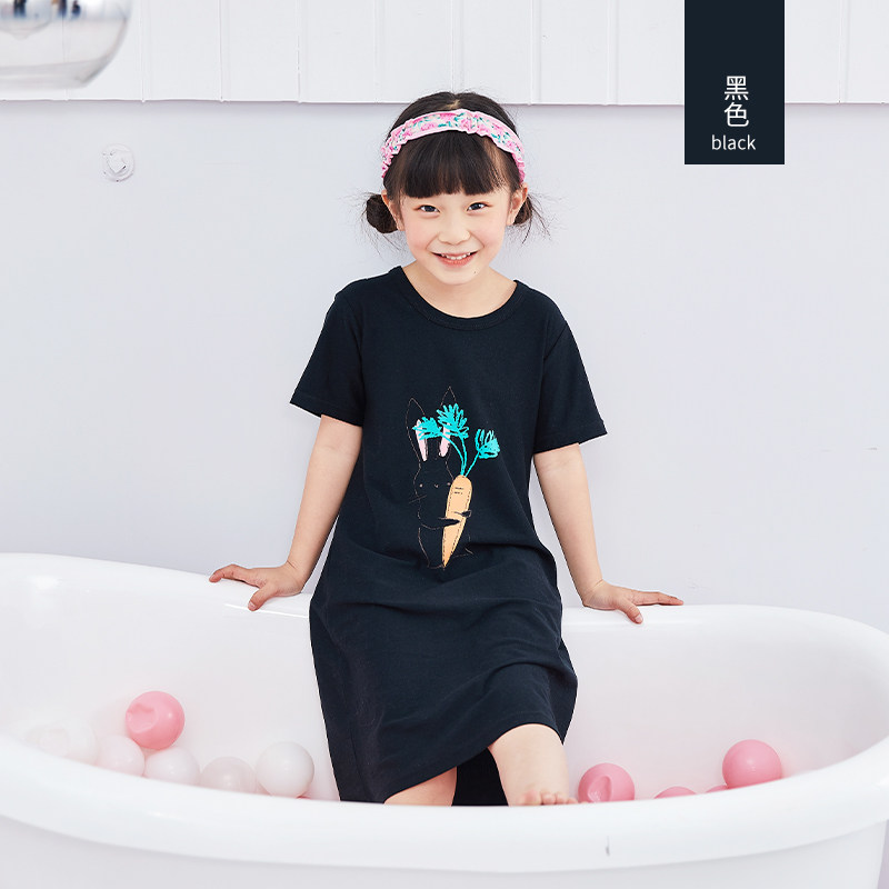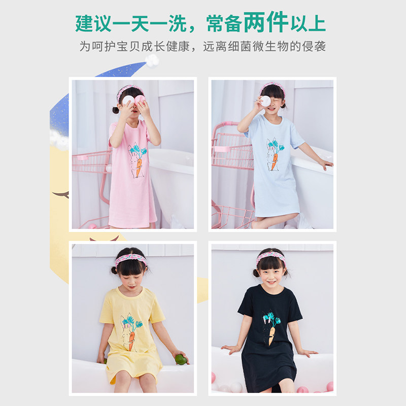 Children's pure cotton sleeping dress girl's Summer thin child pajamas baby 2021 new short sleeve girl