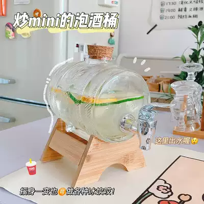 Glass beverage barrel with faucet in refrigerator cold bucket horizontal net red mini wine barrel can be poured back into household glass jar