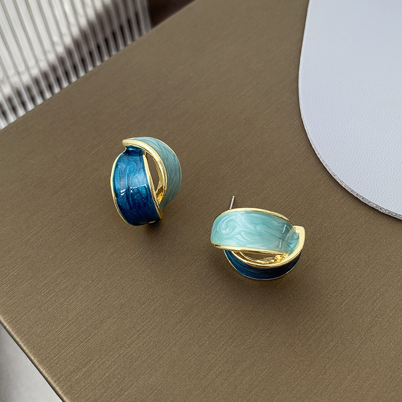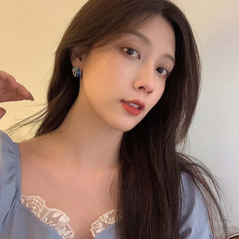 Blue earrings high-sense fashion net red simple splicing coloured mosquito plate ear clamp without ear hole nails