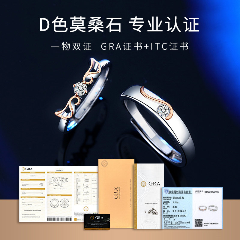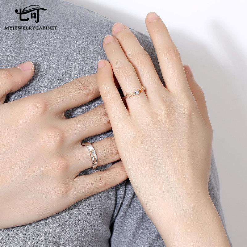 Moissanite diamond ring couple ring female niche design pair ring couple model sterling silver pair fashion personality wedding gift