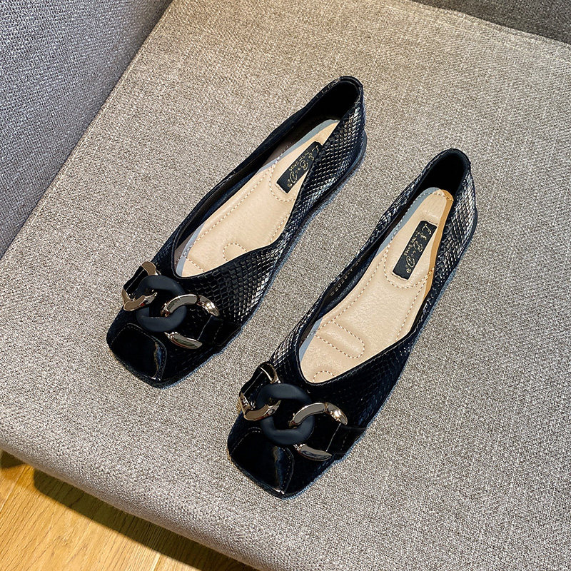 Square toe shallow mouth shoes women's 2022 summer new fashion all-match metal buckle one pedal flat low heels