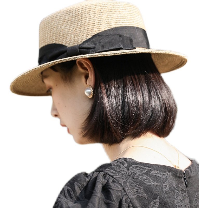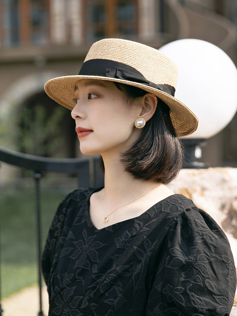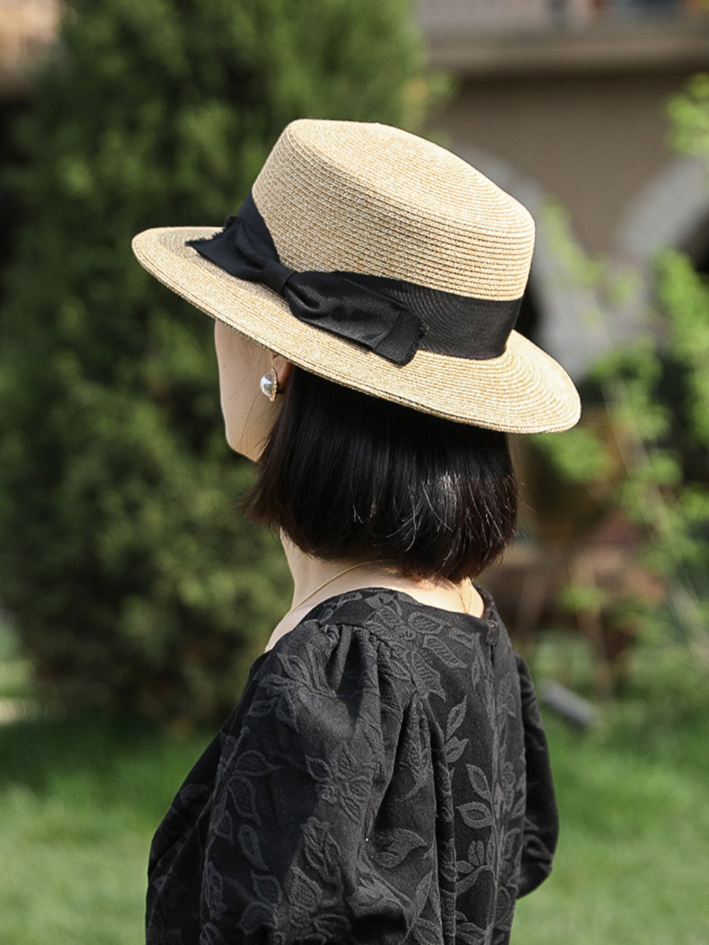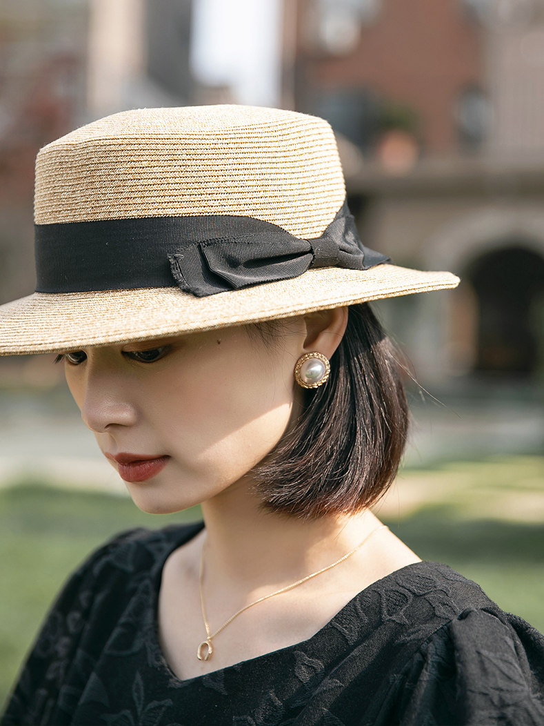 French new flat eaves straw hat female summer sun hat Japanese Joker wide eaves sunscreen hat flat sun hat tide hat