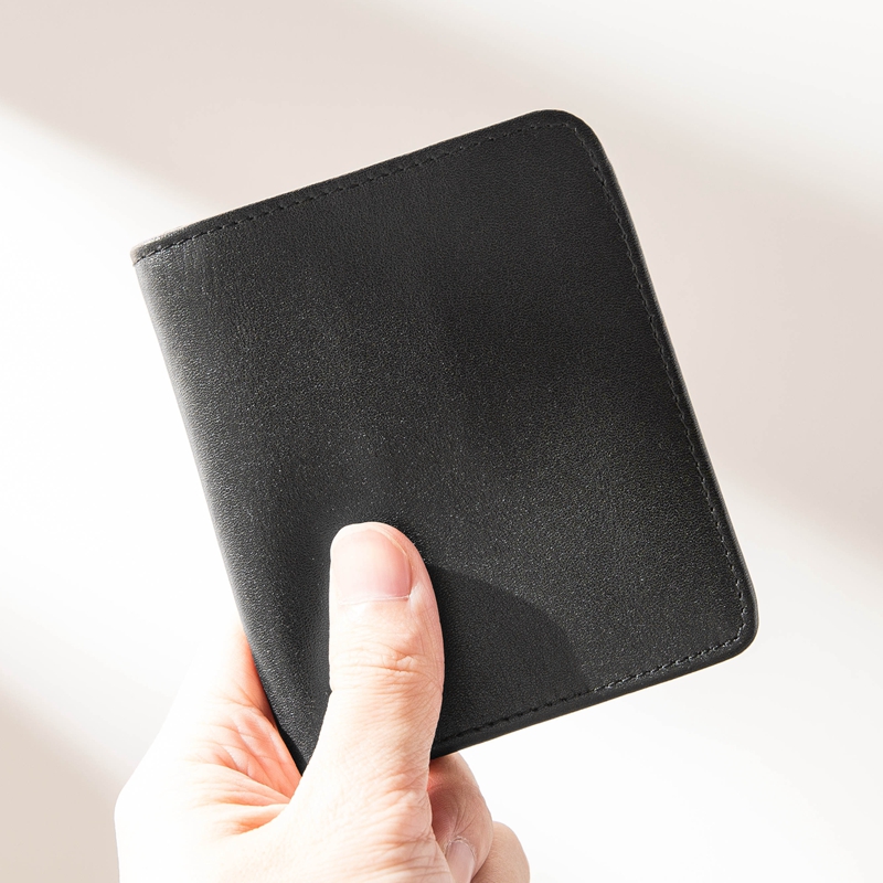 New genuine leather men's ultra-thin short clip minimalist headlayer cow leather driver's license bag vertical youth money clip women's wave