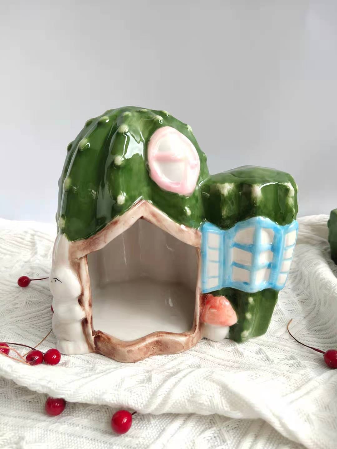 Ceramic micro-defect cactus pet nest hamster golden bear summer cool shelter nest cute desktop decoration green