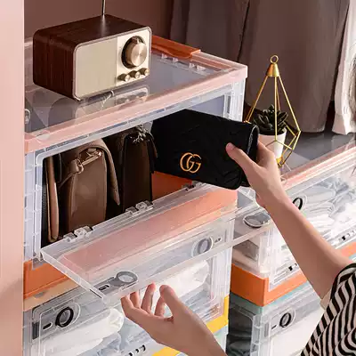 Toy storage box side open children's snack storage box front open plastic transparent finishing storage cabinet basket folding