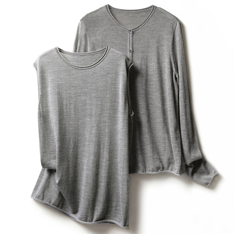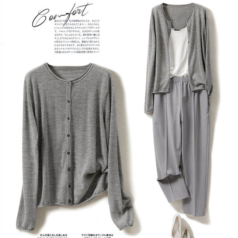 Fine spinning ultra-thin round neckline cashmere cardiovert jacket Two sets woman knit slim Grey Goat Sweatshirt Suit Outside set with long sleeves