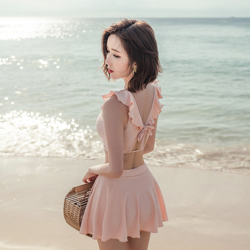 Swimsuit women's 2021 new split skirt conservative les thin small chest sexy Korean student hot spring swimsuit