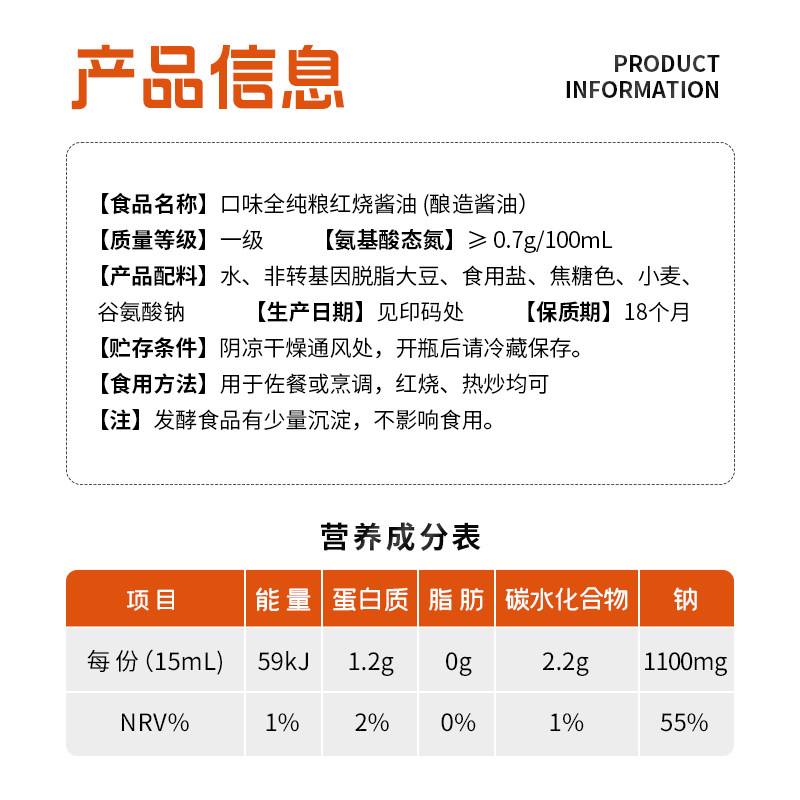 Taste whole raw soy sauce pure grain soy sauce 0 added premium soybean brewing household 340ml small bottle braised soy sauce