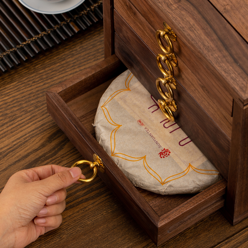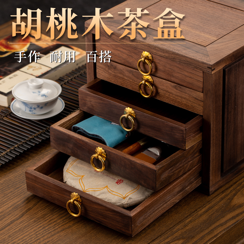 Tea cake box walnut solid wood Pu'er tea cake storage box multi-layer tea storage drawer type tea warehouse tea tray tea can