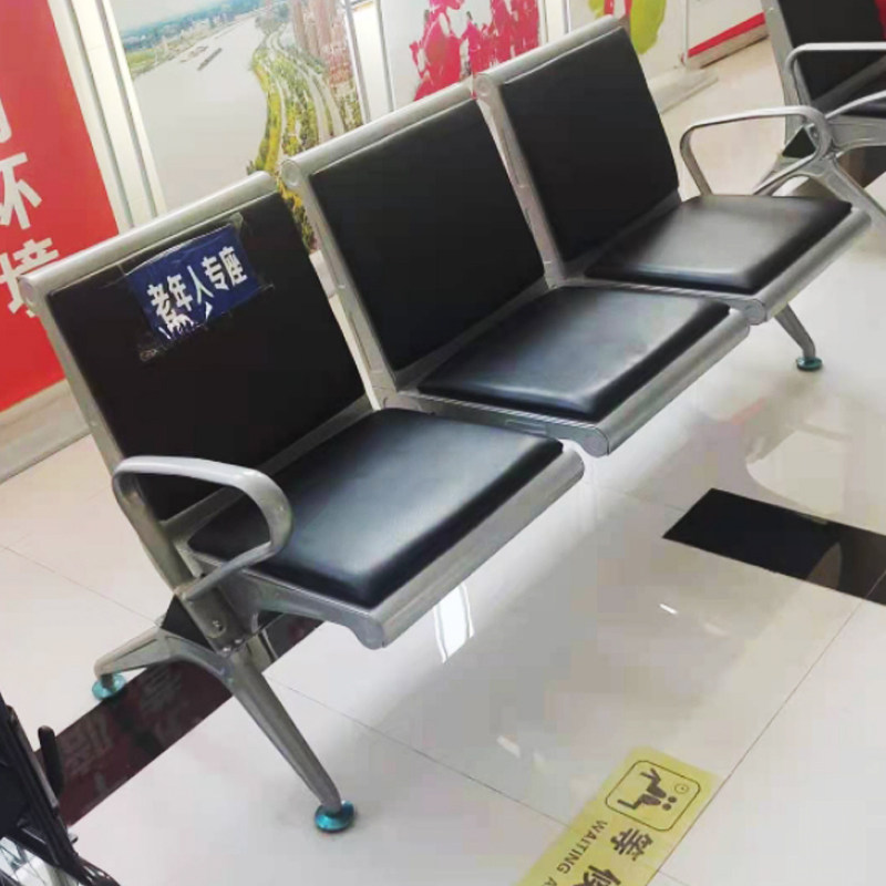 Three-seat thick steel row chair bank hospital waiting chair factory public rest seat with leather cushion station row of chairs