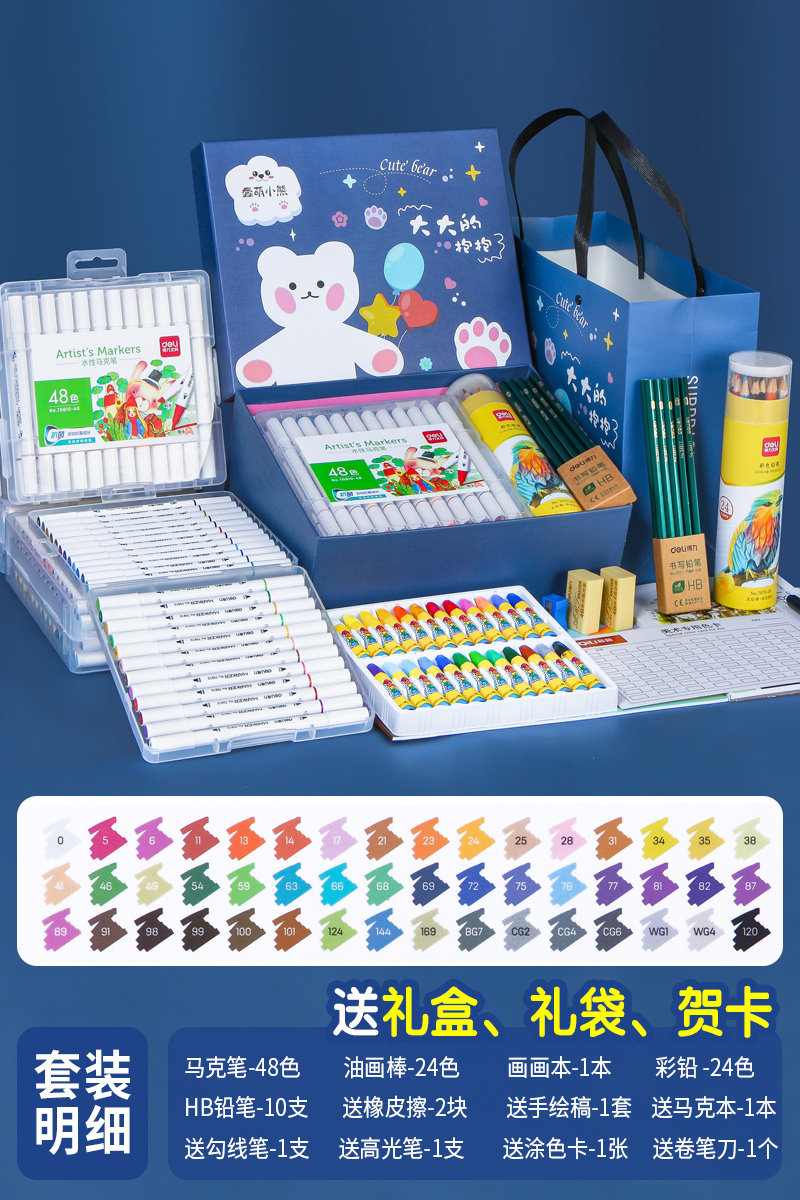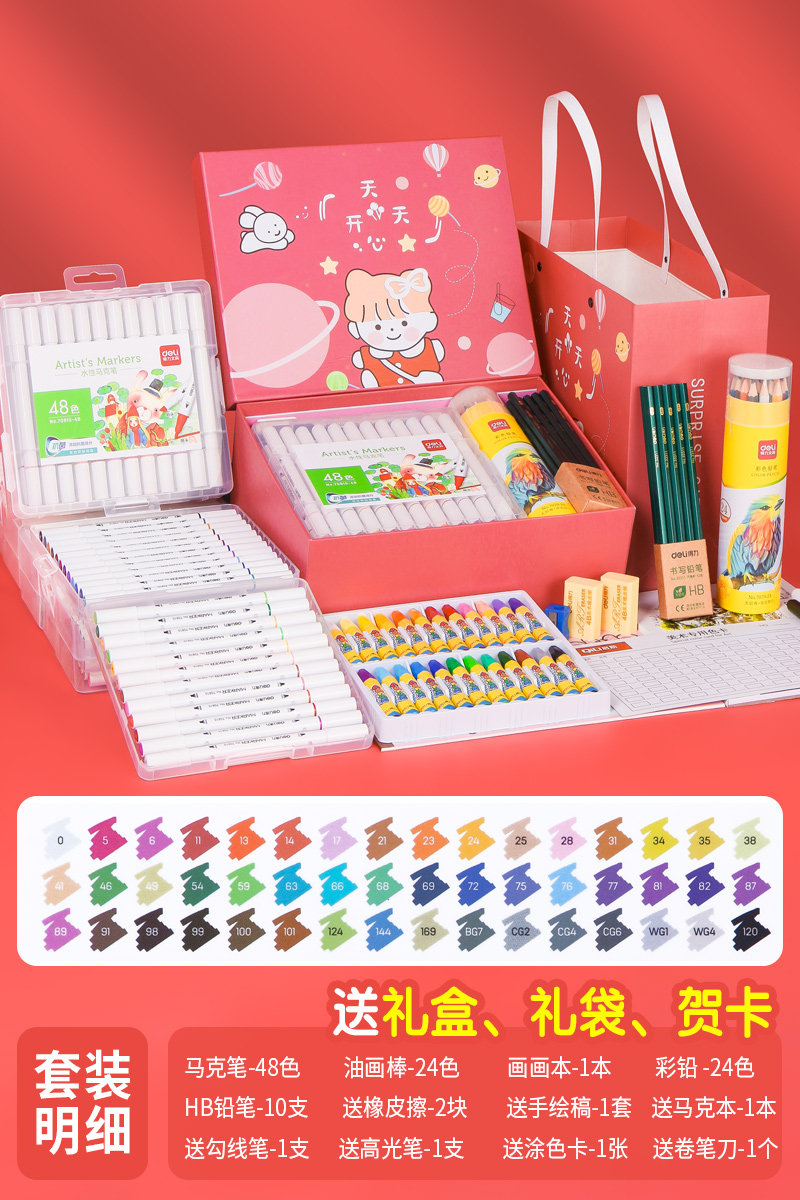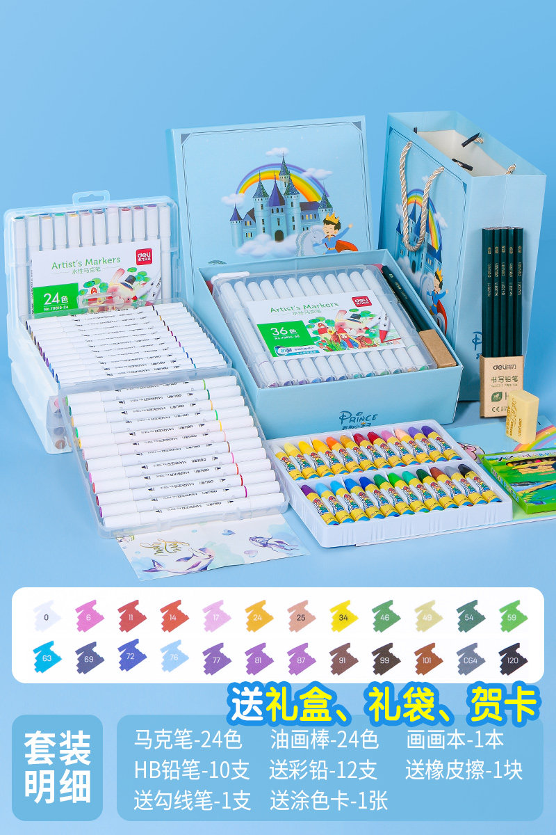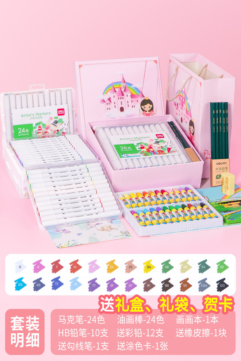 Deli seal watercolor pen 24 color children's drawing brush set color pen washable non-toxic primary school students kindergarten art students special graffiti color 36 color oil painting stick Six one painting gift box