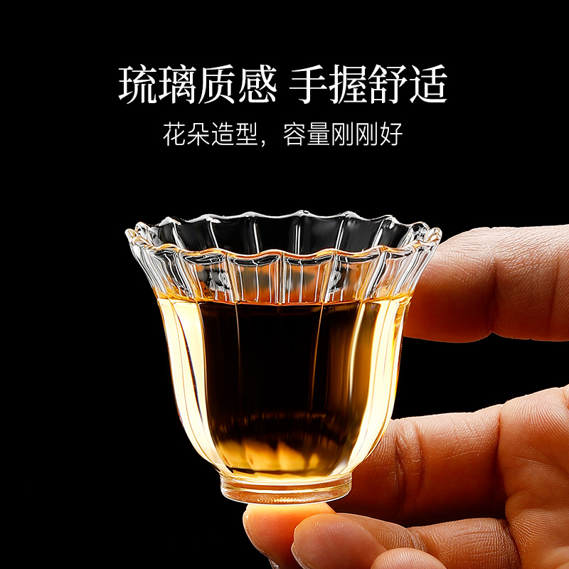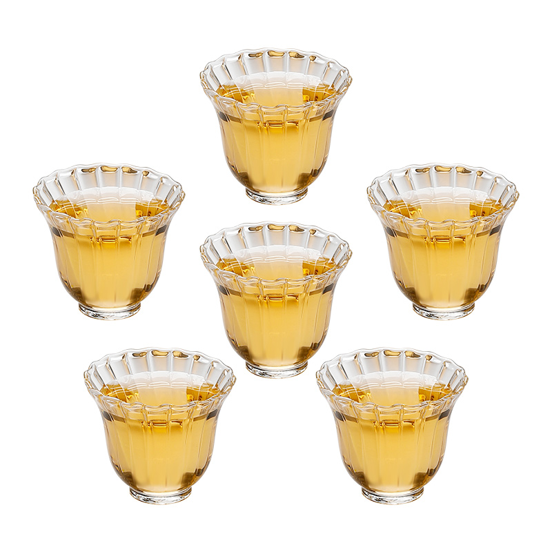 Longshan Kungfu Tea Cup Six glass cup sets resistant high temperature vertical stripes Tea Cup pure handmade owner cup