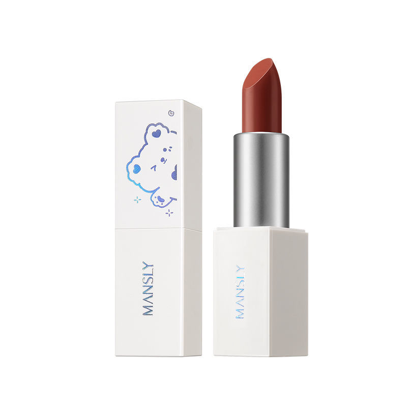 (Magnetic buckle) Lucky Bear Fog Lipstick Matte Moisturizing Non-drying Lip Balm Lip Glaze Red Tea Color Whitening Students