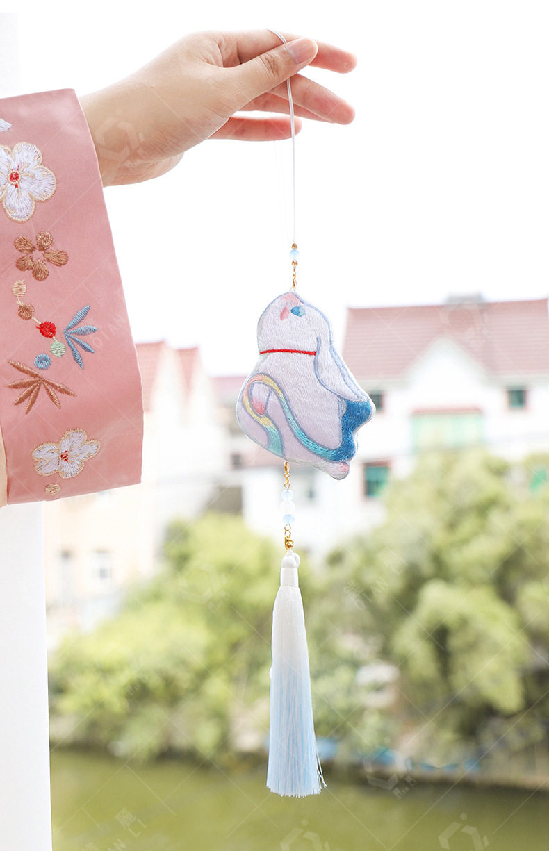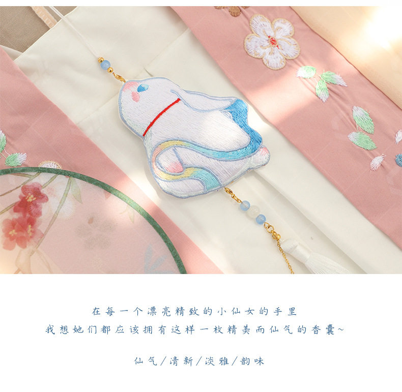 New festival sachet double-sided embroidery elegant moon rabbit hanging neck sachet pendant special-shaped sachet Hanfu accessories waist