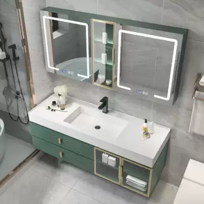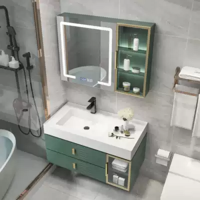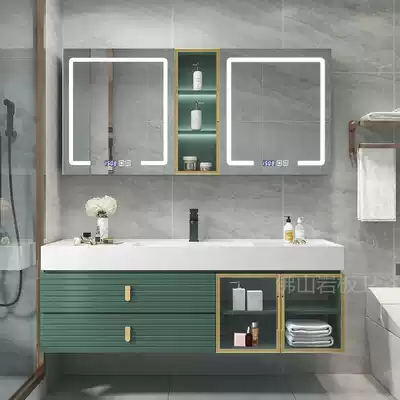 Light luxury bathroom cabinet one-piece basin combination Smart solid wood oak modern simple powder room sink washbasin cabinet
