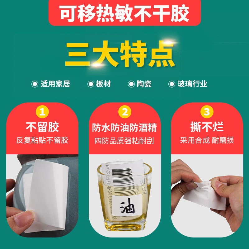 No rubber removes label paper three heat-resistant synthetic adhesive 60*40 30 50 80 waterproof easy tear and irritable back rubber barcode printed furniture plate glass sticker