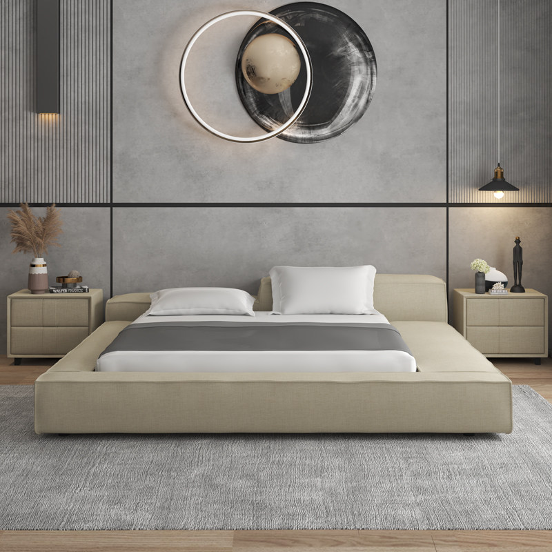 Japanese-style tatami fabric bed removable and washable wabi-sabi style bed bedroom master bedroom modern minimalist double floor-to-ceiling marriage bed