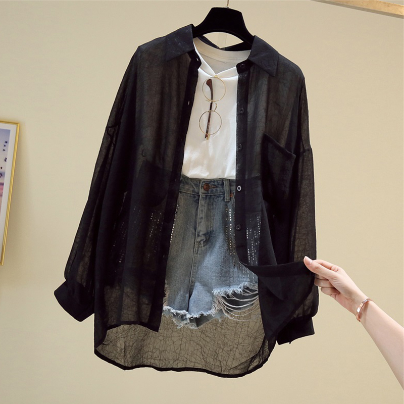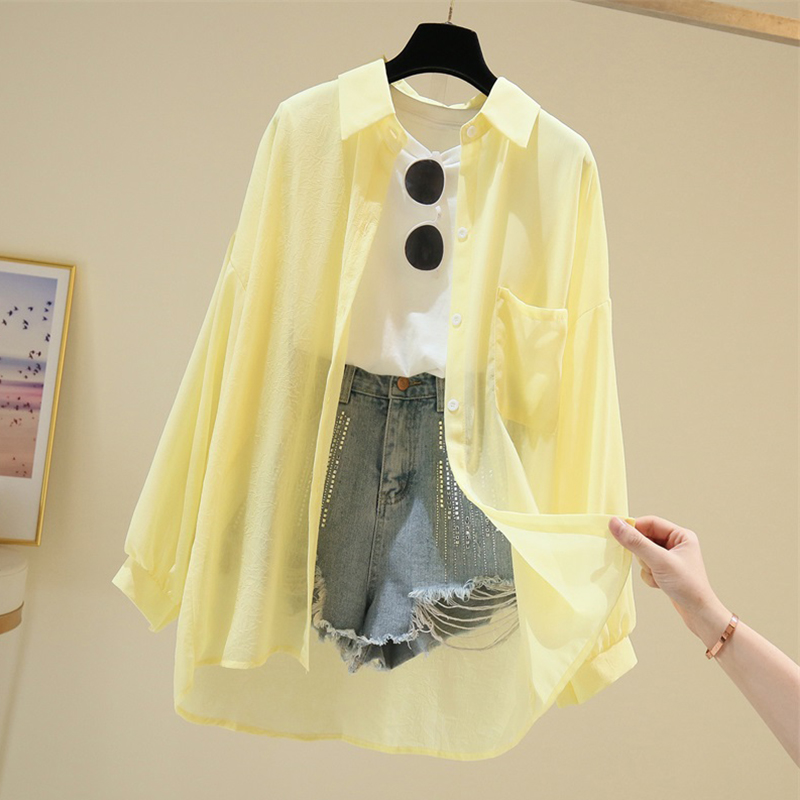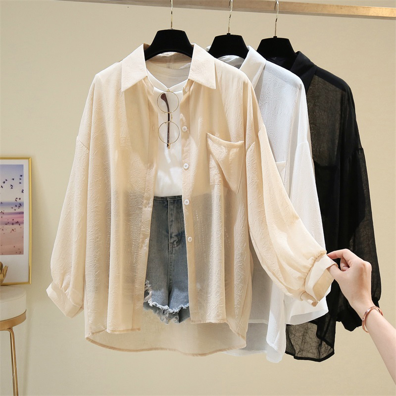 2022 Summer new Korean version Fashion thin Ice Silk Sunscreen Woman Loose 100 hitch shirt-spinning cardiovert jacket