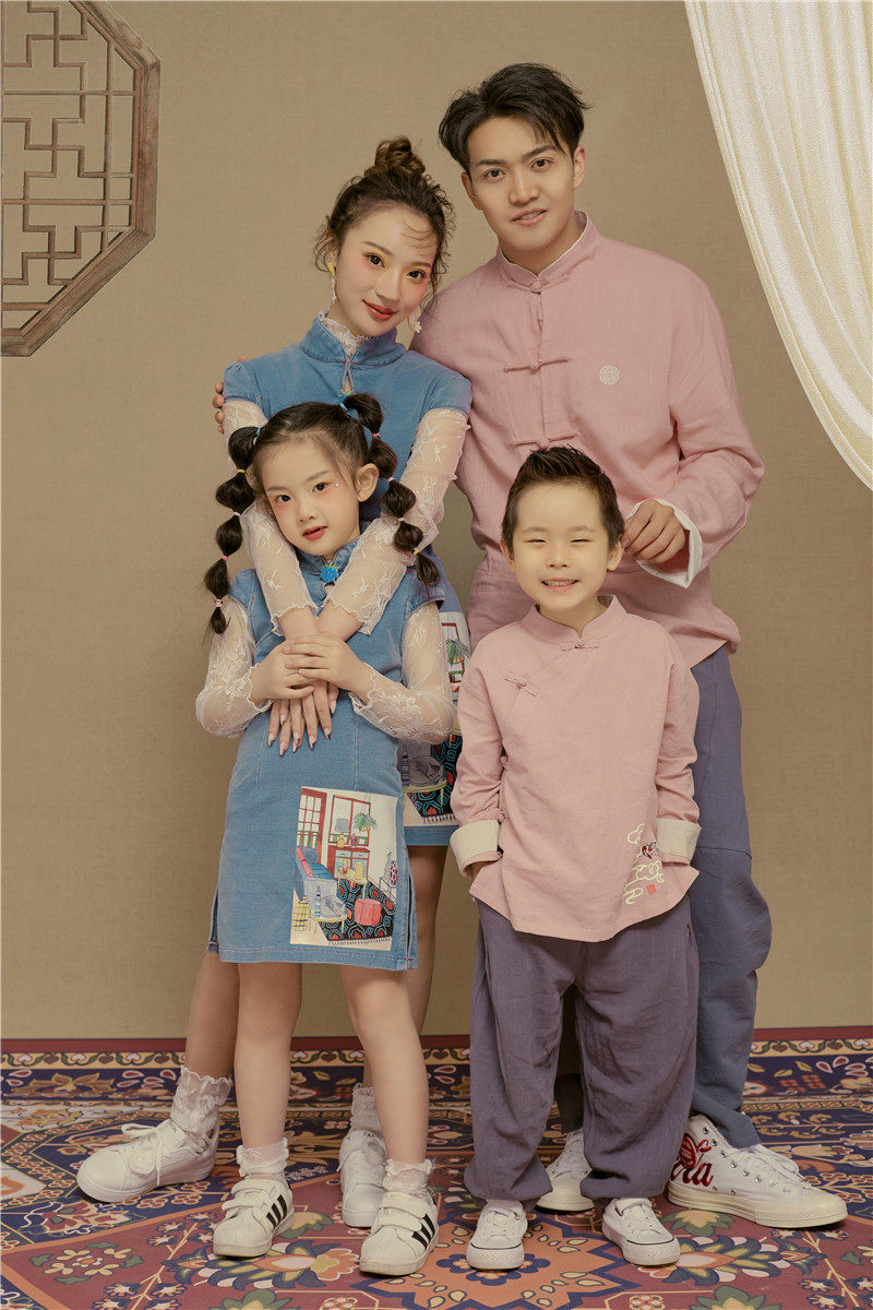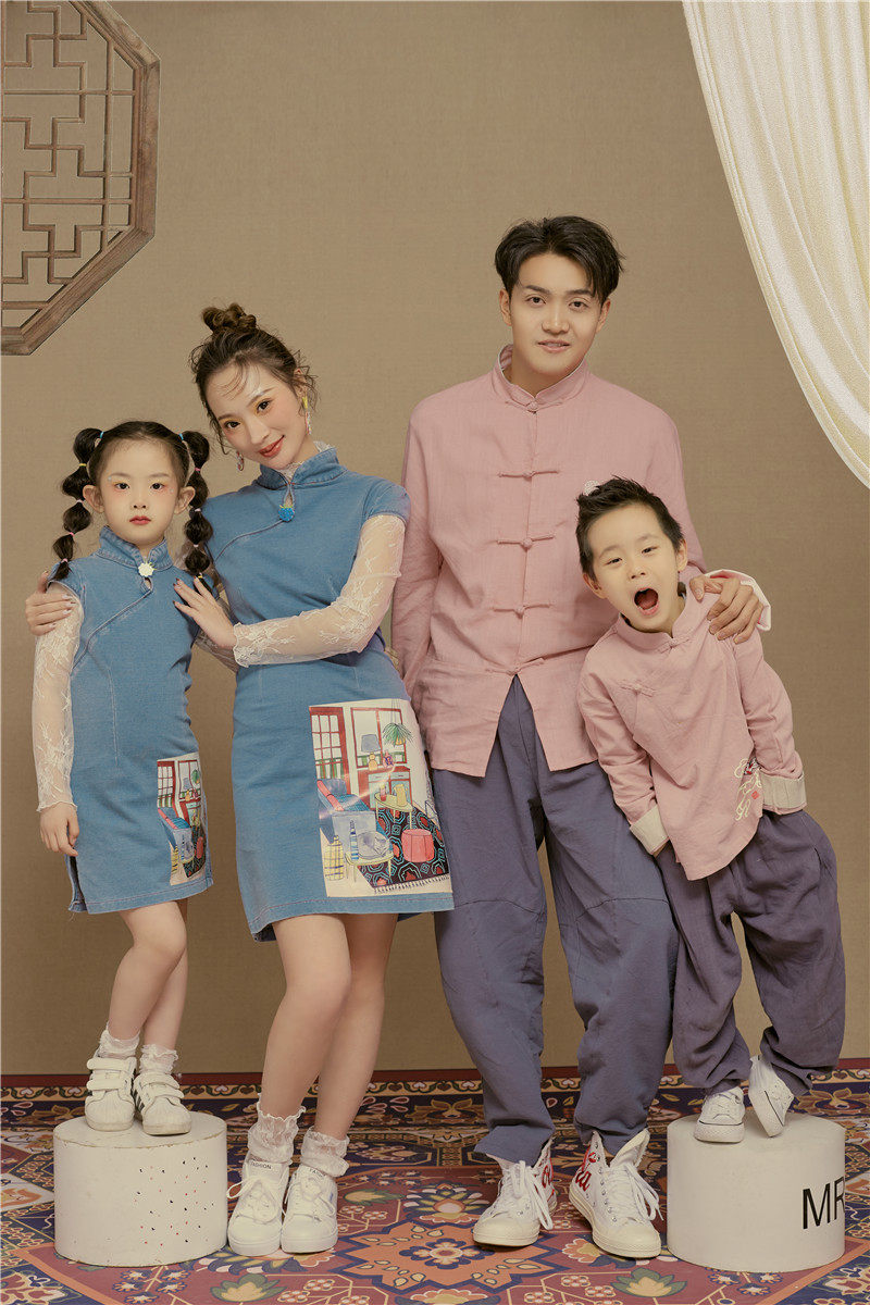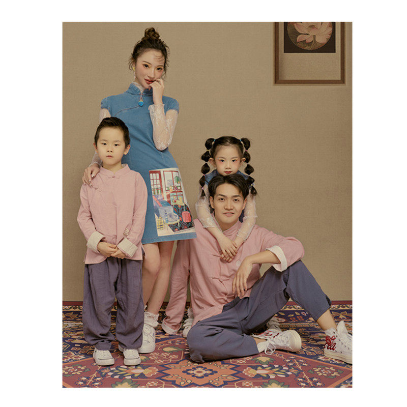 21 New Chinese style painting a six - member family of paternity photography clothing Fuhan clothing to take pictures of parent-child clothing