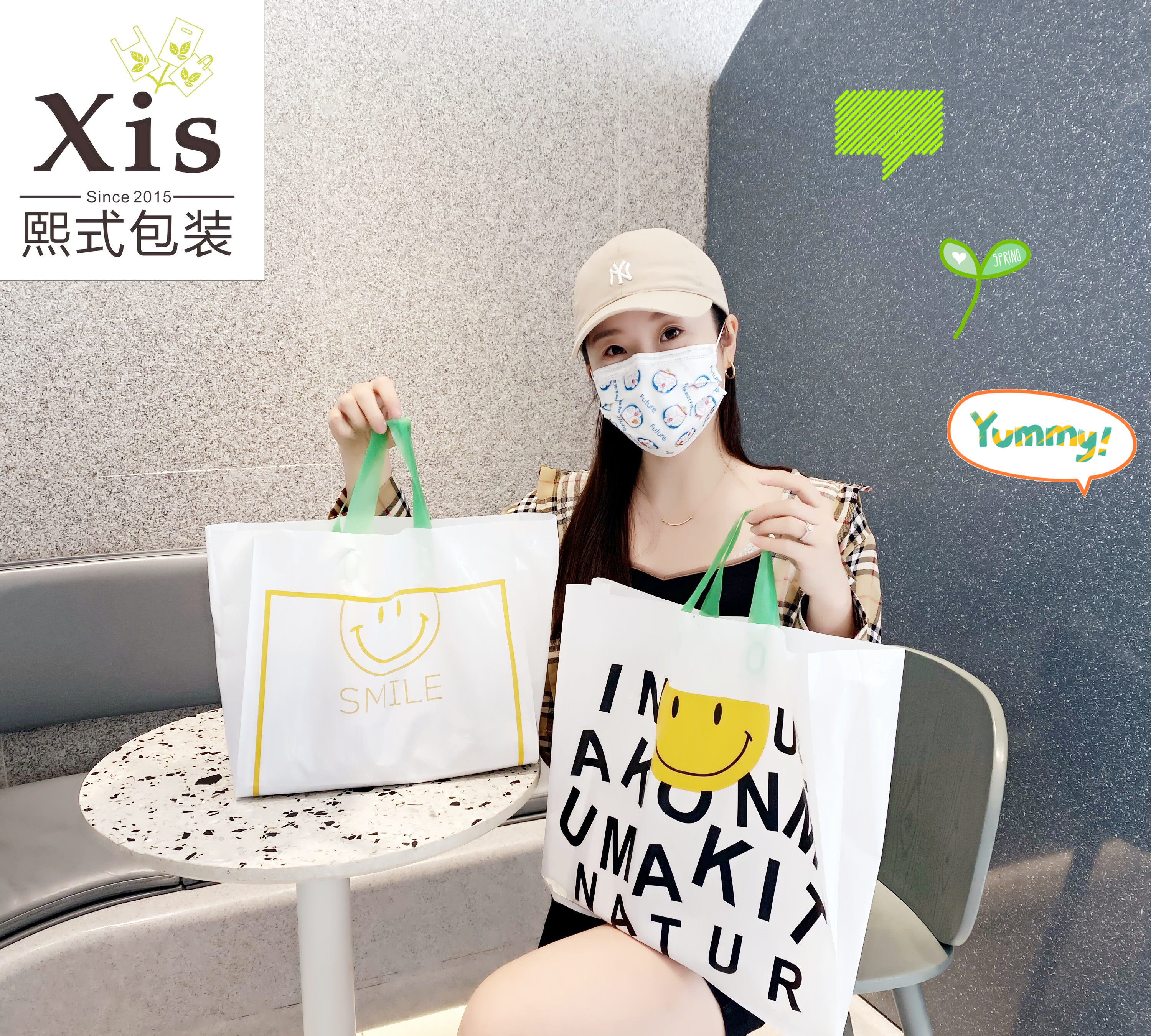 Thickened Plastic Bag Sub clothing Hand bags Inches yellow smiley face tender green mesh red packing Han Wind hand carrying gift
