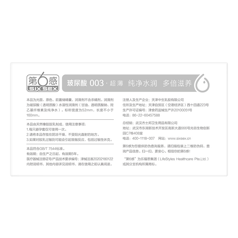 The sixth sense hyaluronic acid condom ultra-thin naked into 001 male and female special official flagship store condom